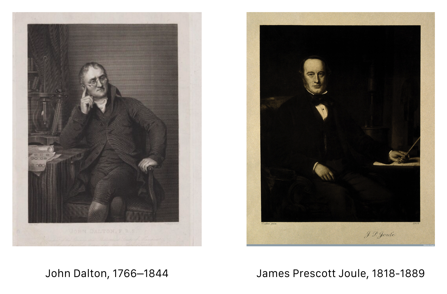 Dalton divided his time between personal scientific research and private tutoring which leads us to another reason for our indebtedness: among the students whom he privately tutored was a young James Joule, destined to become the next of a string of famous Manchester scientists that continues to this day.