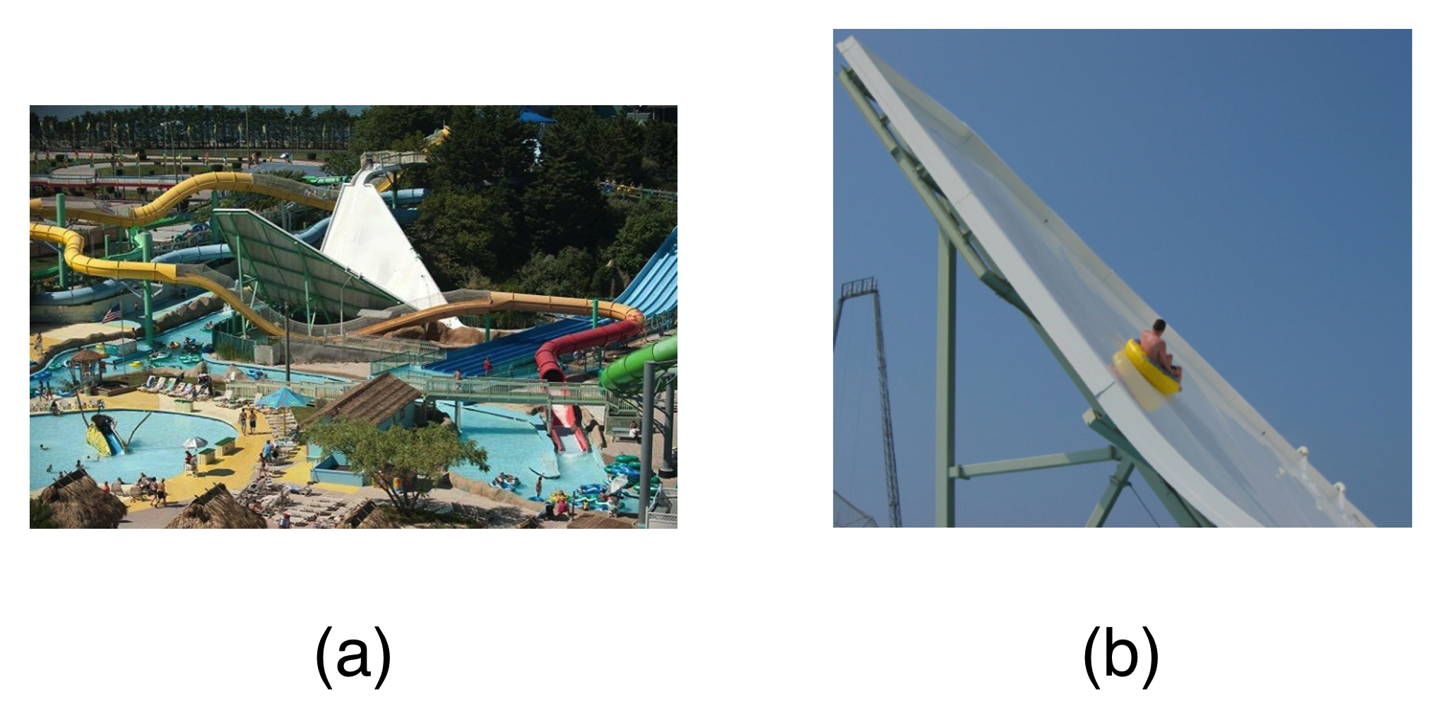 Figure 5.9: (a) An aerial view of Jolly Roger Amusement Park in Ocean City, Maryland. (b) A photo of me on the giant water slide.
